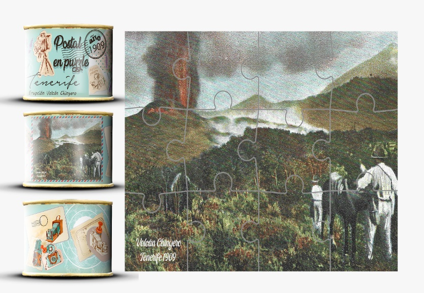 COLECCIÓN VINTAGE POSTAL PUZZLE EN LATA, ERUPCIÓN VOLCÁN CHINYERO 1909